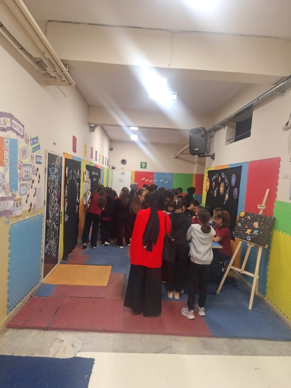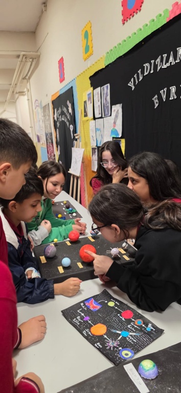 Fen Bilimleri dersinde 5. 6. ve 7. Sınıf öğrencilerimizin dönem içerisinde yapmış olduğu sunum materyalleri ile "Uzay Sergisi" açıldı. 4-10 Ekim Uzay Haftası Sergisinde, 5. Sınıflar Ay'ın Evrelerini, 6. Sınıflar Güneş Sistemi, Ay ve Güneş Tutulmalarını, 7.Sınıflar Uzay Teknolojileri ile Bir Yıldızın oluşum Evreleri konuları kapsamında sunumlarını gerçekleştirdiler.